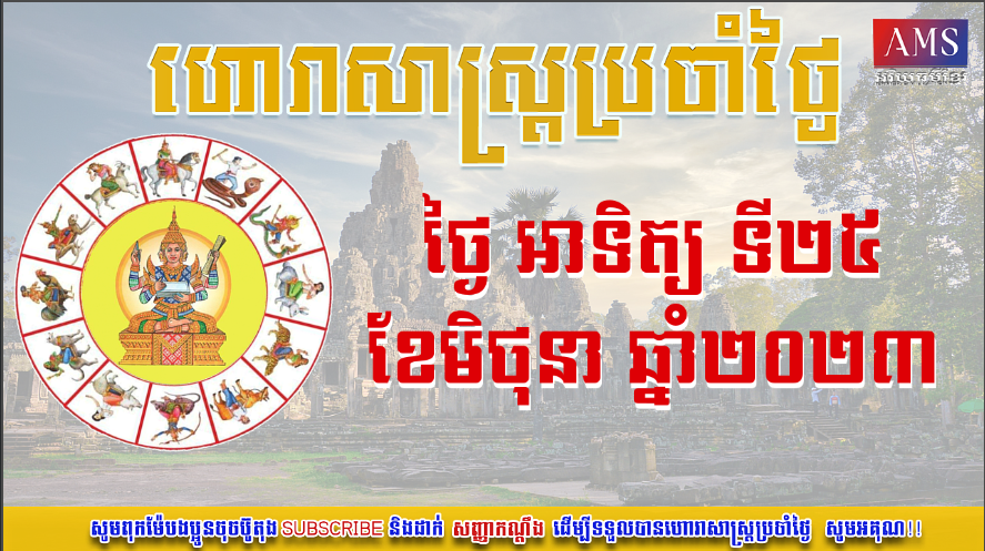 ហោរាសាស្រ្តប្រចាំថ្ងៃអាទិត្យ ៨កើត ខែបឋមាសាឍ ឆ្នាំថោះ​ បញ្ចស័ក ព.ស​២៥៦៧ត្រូវនឹងថ្ងៃទី២៥ ខែមិថុនា ឆ្នាំ២០២៣