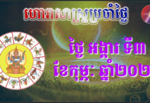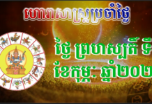 *ចំណាំ៖ ឆ្នាំទាំង៤ ថោះ ម្សាញ់ វក កុរ រាសីឡើងខ្ពស់ត្រដែត។ ឆ្នាំទាំង៦ ជូត ឆ្លូវ រោង មមី មមែ ច រាសីល្អមធ្យម។ ឆ្នាំទាំង២ ខាល រកា រាសីស្រុតចុះ។