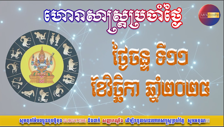 ទំព័រដើមហោរាសាស្ត្រហោរាសាស្រ្តប្រចាំថ្ងៃចន្ទ ១១កើត ខែកត្តិក ឆ្នាំរោង ឆស័ក ព.ស២៥៦៨ត្រូវនឹងថ្ងៃទ... ហោរាសាស្រ្តប្រចាំថ្ងៃចន្ទ ១១កើត ខែកត្តិក ឆ្នាំរោង ឆស័ក ព.ស២៥៦៨ត្រូវនឹងថ្ងៃទី១១ ខែវិច្ឆិកា ឆ្នាំ២០២៤ ដោយ: AMS Khmer Civilization ហោរាសាស្ត្រ បានកែប្រែ: November 11, 2024 *ចំណាំ៖ ឆ្នាំទាំង៤ ខាល ថោះ មមែ ច រាសីខ្ពស់ត្រដែត។ ឆ្នាំទាំង៤ ជូត មមី វក កុរ រាសីល្អមធ្យម។ ឆ្នាំទាំង៤ ឆ្លូវ រោង ម្សាញ់ រកា រាសីស្រុតចុះ។ Share FacebookTwitterReddItMixVK - Advertisement - អត្ថបទជាប់ទាក់ទង ហោរាសាស្ត្រ00:06:12 ហោរាសាស្រ្តប្រចាំថ្ងៃព្រហស្បតិ៍ ៧កើត ខែមិគសិរ ឆ្នាំម្សាញ់ សប្តស័ក ព.ស២៥៦៩ ត្រូវនឹងថ្ងៃទី២៧ ខែវិច្ឆិកា ឆ្នាំ២០២៥November 27, 2025 ហោរាសាស្ត្រ00:06:00 ហោរាសាស្រ្តប្រចាំថ្ងៃសៅរ៍ ៩កើត ខែមិគសិរ ឆ្នាំម្សាញ់ សប្តស័ក ព.ស២៥៦៩ ត្រូវនឹងថ្ងៃទី២៩ ខែវិច្ឆិកា ឆ្នាំ២០២៥November 29, 2025 ហោរាសាស្ត្រ00:06:17 ហោរាសាស្រ្តប្រចាំថ្ងៃពុធ ៦កើត ខែមិគសិរ ឆ្នាំម្សាញ់ សប្តស័ក ព.ស២៥៦៩ ត្រូវនឹងថ្ងៃទី២៦ ខែវិច្ឆិកា ឆ្នាំ២០២៥November 26, 2025 ហោរាសាស្ត្រ00:05:56 ហោរាសាស្រ្តប្រចាំថ្ងៃសុក្រ ៨កើត ខែមិគសិរ ឆ្នាំម្សាញ់ សប្តស័ក ព.ស២៥៦៩ ត្រូវនឹងថ្ងៃទី២៨ ខែវិច្ឆិកា ឆ្នាំ២០២៥November 28, 2025 អត្ថបទផ្សេងទៀត ហោរាសាស្ត្រ 00:06:00 ហោរាសាស្រ្តប្រចាំថ្ងៃសៅរ៍ ៩កើត ខែមិគសិរ ឆ្នាំម្សាញ... November 29, 2025 វីដេអូឯកសារ 00:03:38 ពាក្យ ផ្ទះស្នាក់ | លោក ណា សុវត្ថាវិទ្ធ November 25, 2025 ហោរាសាស្ត្រ 00:06:17 ហោរាសាស្រ្តប្រចាំថ្ងៃពុធ ៦កើត ខែមិគសិរ ឆ្នាំម្សាញ់... November 26, 2025 - Advertisement - បណ្ដាញសង្គម18,489FansLike191,100FollowersFollow19,900SubscribersSubscribe - Advertisement -