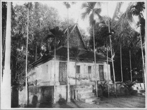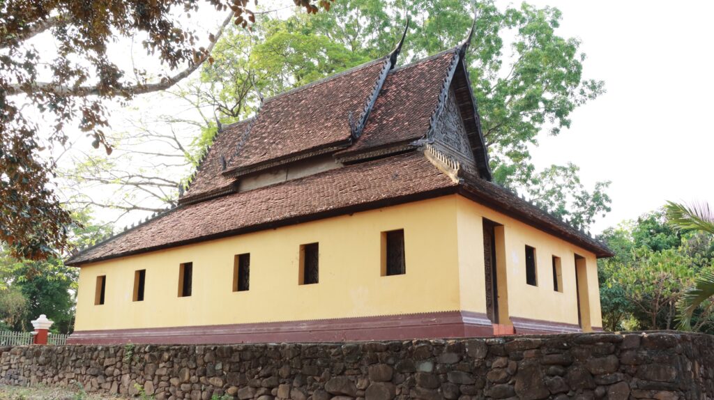 ដោយឡែក បើមើលចំពោះការវិវឌ្ឍសិល្បៈស្ថាបត្យកម្មព្រះវិហារបុរាណខាងលើ គឺបានចាប់ផ្តើមពីឆ្នាំ១៨៦០ ត្រឹមតែជារោងឧបោសថសង់អំពីឈើប្រក់ស្បូវ រហូតដល់ឆ្នាំ១៩០៩ បានកែលម្អមកជាសំណង់ឈើប្រក់ក្បឿងនិងជញ្ជាំងឥដ្ឋ ហើយដូចបានឃើញសព្វថ្ងៃព្រះវិហារនេះសង់នៅលើខឿន២ថ្នាក់។ ខឿនថ្នាក់ទី១ កម្ពស់ប្រហែលត្រឹមចង្កេះ ដែលផ្នែកខាងកើត និងខាងជើងមានជណ្តើរ៣កាំ។ ផ្នែកត្បូង និងខាងលិចពុំមានជណ្តើរឡើយ ហើយនៅជាប់ខឿនជ្រុងនិរតីមានដើមរកាធំមួយដើម។ ខឿនថ្នាក់ទី២ មានកម្ពស់ប្រហែលកន្លះម៉ែត្រ។ ចំពោះរចនាសម្ព័ន្ធជញ្ជាំងព្រះវិហារ គេមើលឃើញជាទូទៅពុំមានក្បាច់លម្អឡើយ ពោលគឺជាជញ្ជាំងឥដ្ឋកំបោរបាយអ សព្វថ្ងៃលាបពណ៌លឿងស្រាល។ ជញ្ជាំងខាងកើតនិងខាងលិចមានទ្វារម្ខាង២ អមកូនបង្អួចតូចៗ២ដូចគ្នា។ ប៉ុន្តែជញ្ជាំងខាងជើងមានទ្វារតែ១ អមដោយបង្អួចតូចៗចំនួន៥ ហើយជញ្ជាំងខាងត្បូងពុំមានទ្វារចេញចូលឡើយ មានតែបង្អួចតូចៗចំនួន៦។ ក្រោយការជួសជុល សន្លឹកទ្វារនិងបង្អួចនីមួយៗបានរចនាលម្អដោយក្បាច់ទឹបទឹកមាសរំលេចលើផ្ទៃពណ៌ខ្មៅ។