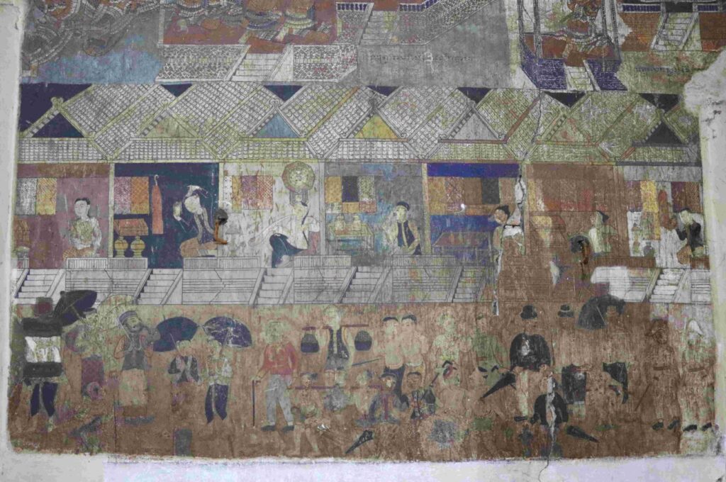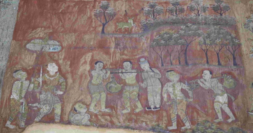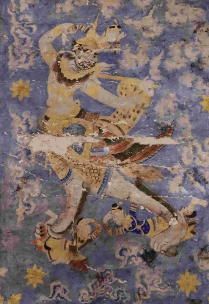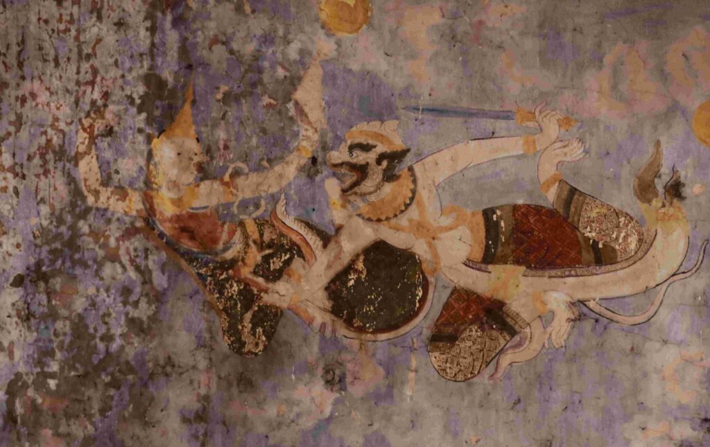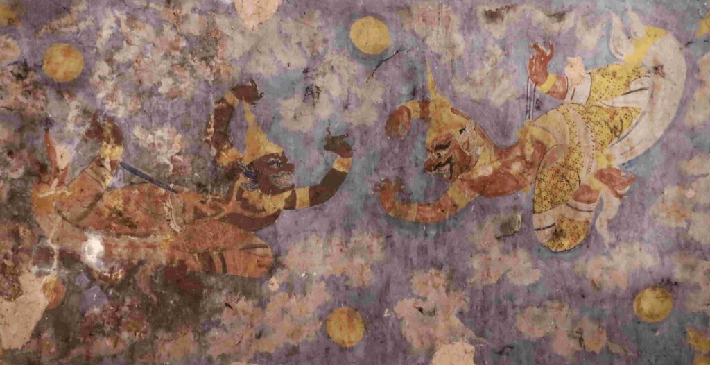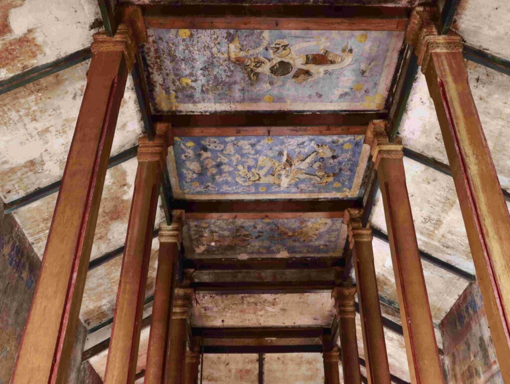 គំនូរតួអង្គខ្លះក្នុងរឿងរាមកេរ្តិ៍គូរលើពិតានព្រះវិហារវត្តកំពង់ត្រឡាចលើ