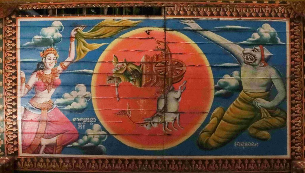 នៅក្នុងអត្ថបទភាគ១ ខ្ញុំបាននិយាយរួចមកហើយអំពីគំនូររឿងរាមកេរ្តិ៍នៅថែវព្រះវិហារព្រះកែវមរកត ក្នុងព្រះបរមរាជវាំង ព្រះវិហារវត្តរាជបូព៌ ក្នុងក្រុងសៀមរាប និងព្រះវិហារវត្តកំពង់ត្រឡាចលើ ស្ថិតក្នុងស្រុកកំពង់ត្រឡាចខេត្តកំពង់ឆ្នាំង។ គំនូរទាំងអស់នោះ សុទ្ធសឹងជាគំនូរបុរាណ ដែលសាងឡើងរវាងចុងសតវត្សរ៍ទី១៩ និងដើមសតវត្សរ៍ទី២០។ ក្នុងអត្ថបទនេះ ខ្ញុំសូមបង្ហាញជូនគំនូររឿងរាមកេរ្តិ៍នៅតាមវត្តមួយចំនួនទៀត ដែលសាងឡើងចុងសតវត្សរ៍ទី២០ ឬឆ្លងមកដល់ក្នុងសម័យទំនើបថ្មី។