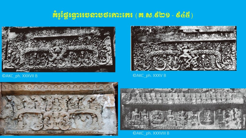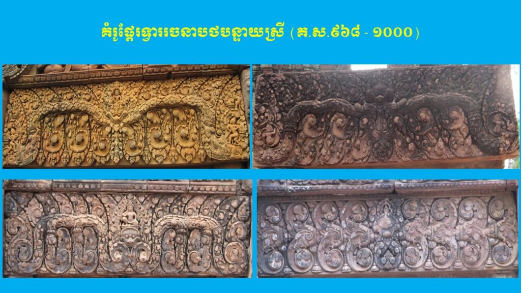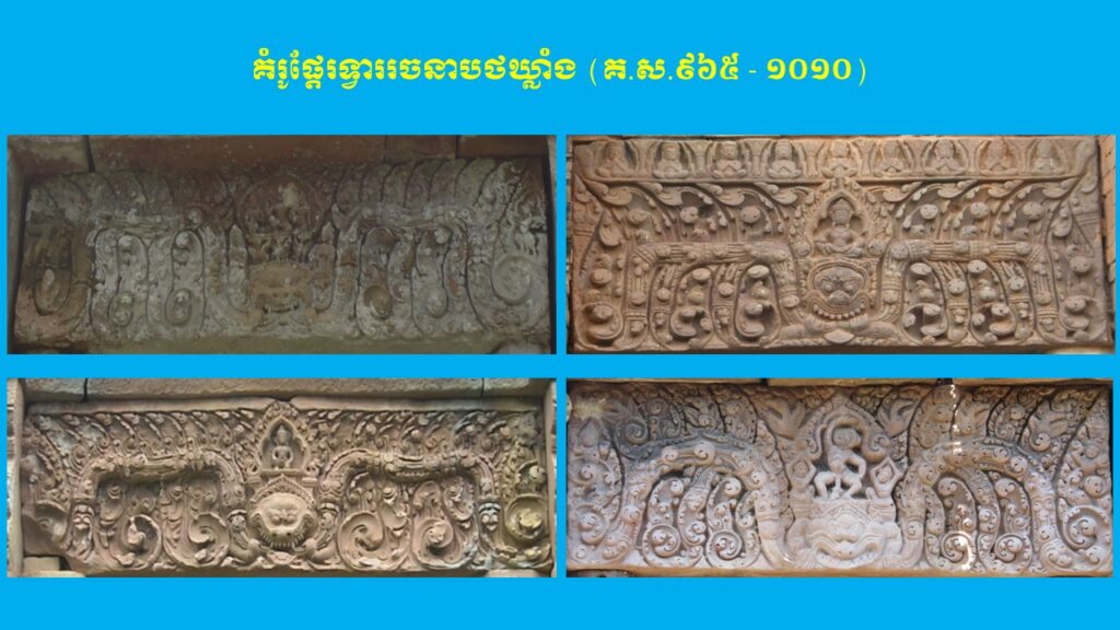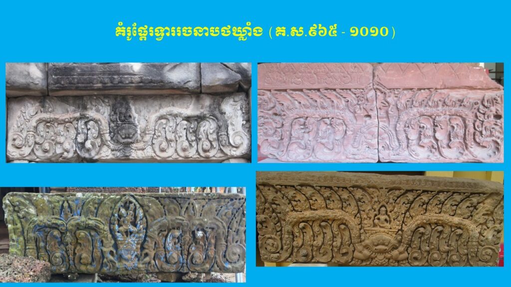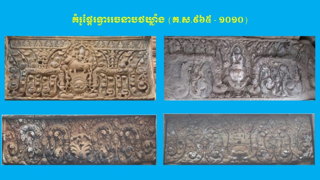 នៅក្នុងភាគទី២ យើងបានបង្ហាញអំពីក្បាច់លម្អ និងការវិវឌ្ឍនៃផ្តែរទ្វារក្នុងសម័យអង្គរ ចំនួន ២ រចនាបថ ពោល គឺរចនាបថគូលែន និងរចនាបថព្រះគោ ដែលស្ថិតនៅក្នុងស.វ.ទី៩ (ដើមសម័យអង្គរ)។ ដោយឡែក នៅក្នុងភាគទី៣ នេះ ដើម្បីកុំឱ្យអត្ថបទមានវិសាលភាពវែងពេក យើងសូមលើកយកត្រឹមតែ ៥ រចនាបថបន្ថែមទៀត ដែលរចនាបថទាំងអស់នេះស្ថិតនៅក្នុងចុងស.វ.ទី៩ ឬដើមស.វ.ទី១០ ដល់ចុងស.វ.ទី១០ ឬដើមស.វ.ទី១១ រួមមាន រចនាបថបាខែង រចនាបថកោះកេរ រចនាបថប្រែរូប រចនាបថបន្ទាយស្រី និងរចនាបថឃ្លាំង។ តើផ្តែរទ្វារនៃស្ថាបត្យកម្មប្រាសាទខ្មែរនាស.វ.ទី១០ ក្នុងរចនាបថទាំងប្រាំនេះ មានលក្ខណៈទូទៅ ក្បាច់លម្អ និងការវិវឌ្ឍសិល្បៈយ៉ាងដូចម្តេចខ្លះ?