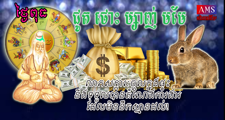 ឆ្នាំទាំង៤ ជូត ថោះ ម្សាញ់ មមែ រាសីឡើងខ្ពស់ត្រដែតសូមលោកអ្នករីករាយ ទទួលយកលាភសំណាង និងប្រាក់កាក់មហាសាលចូលក្នុងផ្ទះ