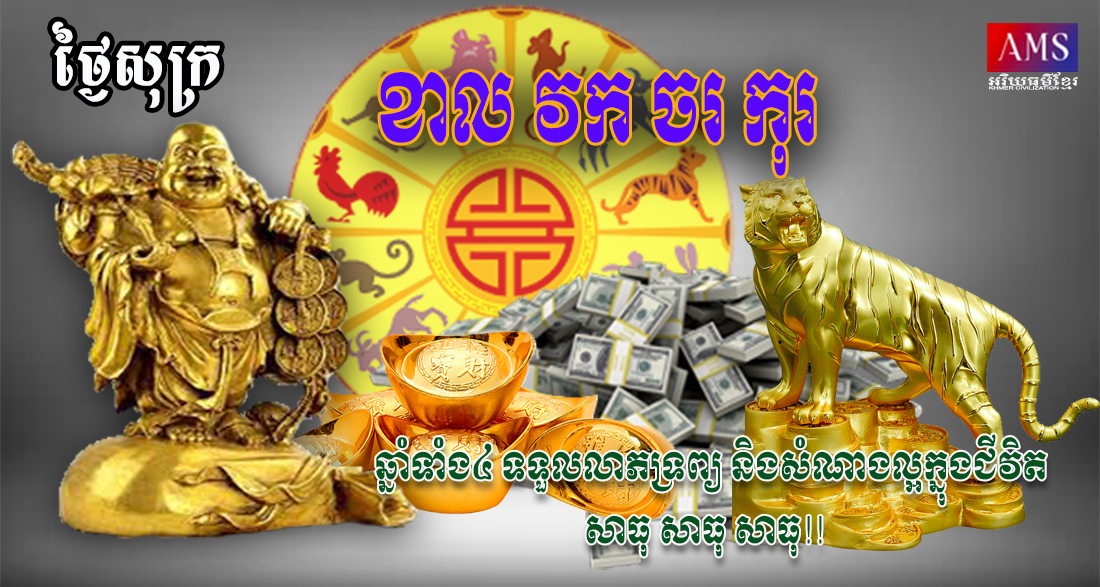 សម្រាប់លោកអ្នកដែលមានកំណើតឆ្នាំកុរ នាមសត្វជ្រូក ធាតុទឹក ពង្សមនុស្សស្រី។ រាសីអស់លោកអ្នកនៅក្នុងថ្ងៃនេះឡើងខ្ពស់ត្រដែត។ ថ្ងៃនេះលាភសំណាងធំណាស់នឹងចូលក្នុងផ្ទះលោកអ្នក ពិសេសលាភសត្វជើងពីរដែលមកពីឆ្ងាយ។ ចូរកុំខ្លាចរអានឹងបណ្តាក់ទុន ឬចាប់ផ្តើមការងារថ្មី។ សម្រាប់អ្នកធ្វើការងាររដ្ឋ ឯកជននានា តំណែងការងារដែលអ្នកកំពុងរំពឹងទុកបានមកដល់ហើយ។ ថ្ងៃនេះជាពេលវេលាល្អក្នុងការទិញចលន និងអចលនវត្ថុចូលផ្ទះ។ អ្វីដែលអ្នកគួរមានការប្រុងប្រយ័ត្នគឺភាពទន់ភ្លន់របស់អ្នក ដែលអាចនឹងធ្លាក់ក្នុងអន្ទាក់របស់គេ ដូច្នេះសូមគិតពិចារណាមុនជឿជាក់លើនរណាម្នាក់។