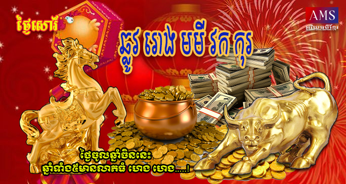 សម្រាប់លោកអ្នកដែលមានកំណើតឆ្នាំកុរ នាមសត្វជ្រូក ធាតុទឹក ពង្សមនុស្សស្រី។ រាសីអស់លោកអ្នកក្នុងថ្ងៃនេះឡើងខ្ពស់ត្រដែត។ លោកអ្នកនឹងទទួលបានភាពជោគជ័យពេញមួយថ្ងៃ។ ការងារ រកទទួលទានមានបាន នឹងរីកចម្រើនយ៉ាងខ្លាំង។ លោកអ្នកអាចចាប់ផ្តើមកិច្ចការបណ្តាក់ទុន ឬផ្លាស់ប្តូរការងារដែលខ្លួនបានគ្រោងទុក។ ដោយឡែកក្នុងថ្ងៃនេះជម្លោះ ឬបញ្ហាកន្លងមកនឹងអាចដោះស្រាយបានយ៉ាងងាយ ប៉ុន្តែត្រូវមានភាពទន់ភ្លន់ និងគោរពភាពពិត។ សូមចាប់យកកិច្ចការងារឲ្យបានឆាប់រហ័សមុនគេ ដើម្បីជោគជ័យ។ ថ្ងៃនេះជាពេលវេលាល្អ សម្រាប់ការទិញចូលអចលនទ្រព្យនានាផងដែរ។
